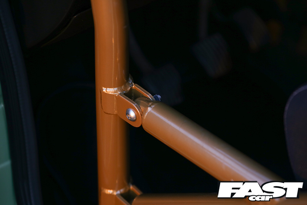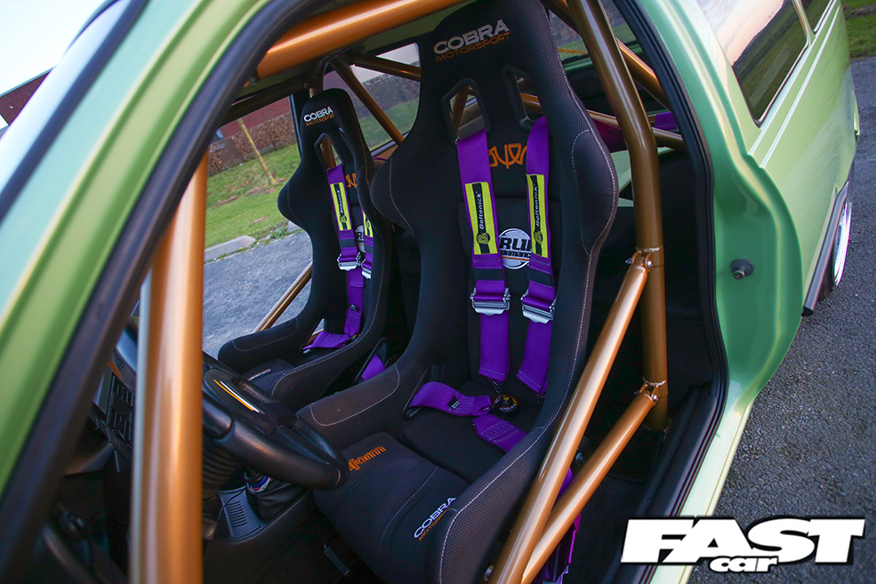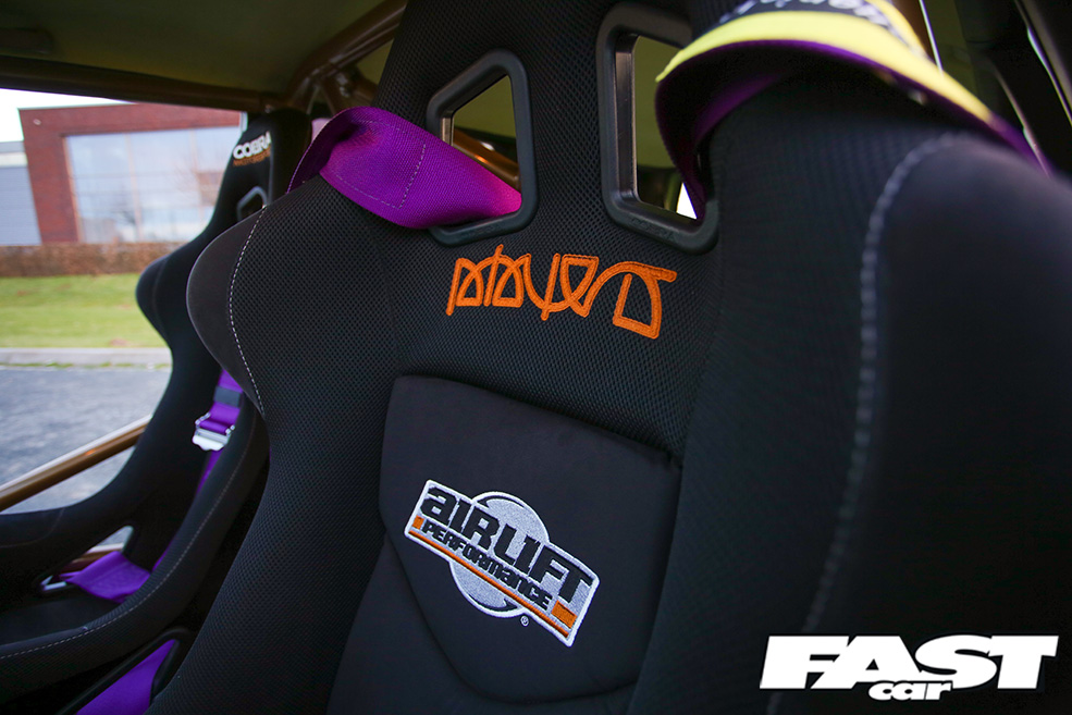 The interior is an absolute work of art too. The rear’s been gutted, with a flat floor fabricated to provide a home for the air-ride system, and Remco’s installed a swanky gold-painted rollcage with bolt-in door bars. Have you ever seen a Kadett estate with a ’cage? This may well be a first. The seats are pretty special as well, being top-spec Cobra items with custom Players stitching. Why Players? “Well, I don’t go to a lot of shows, as I prefer to be in the garage tinkering,” he admits, “but the Players Classic at Goodwood is one of my favourites.” Again, all the work inside’s been carried out by this unstoppable force of nature – the Alcantara trimming, the seat frames, the superstructure for the air lines, the works.