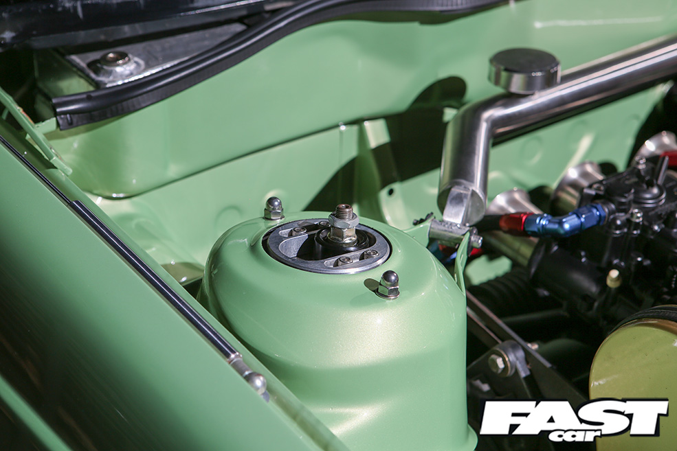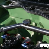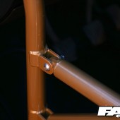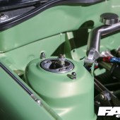 “I custom-built the air-ride system too,” he says. “It uses Air Lift Performance components with 3P management and Koni Yellows at the back, with modifications to the front legs and rear axle; all the suspension points on the chassis have been raised to get everything as low as possible – as a result, the trailing arms lie on the ground when it’s aired out! There are Powerflex bushes throughout and every component has been powdercoated; I also made new camber plates for the front, and shortened steering rods.”