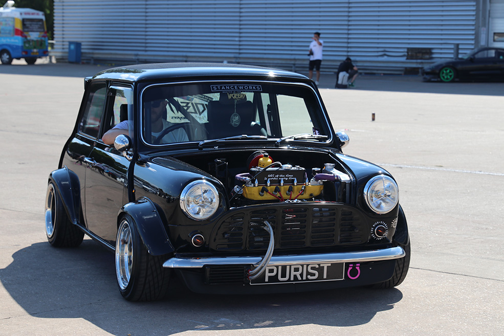 The standard of cars on display was extremely high this year, so it’s tough to single any out for special mention, but we still had some favourites. Andrew Britton’s Liberty Walk-kitted BMW M4 was one, looking menacing in satin. As was the insane orange Mini with a Honda engine and a rather cheeky turbo sticking out of the front. Retro fans were well catered for with a rare Kenmeri Skyline and Fyse Fyson’s Datsun sending the Insta posts into overdrive. The Pennzoil R33 GT-R was also one of the most photographed rides of the day.
