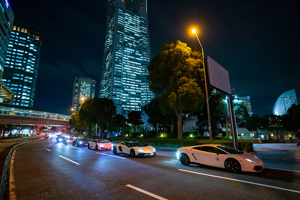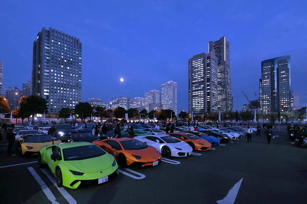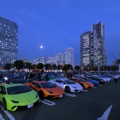 A parade of more than 200 Lamborghini models drove around central Yokohama area, including Minato Mirai, Yokohama Red Brick Warehouse and Yamashita Park, with the color and naturally-aspirated engine noise delighting passers-by and Lamborghini enthusiasts.