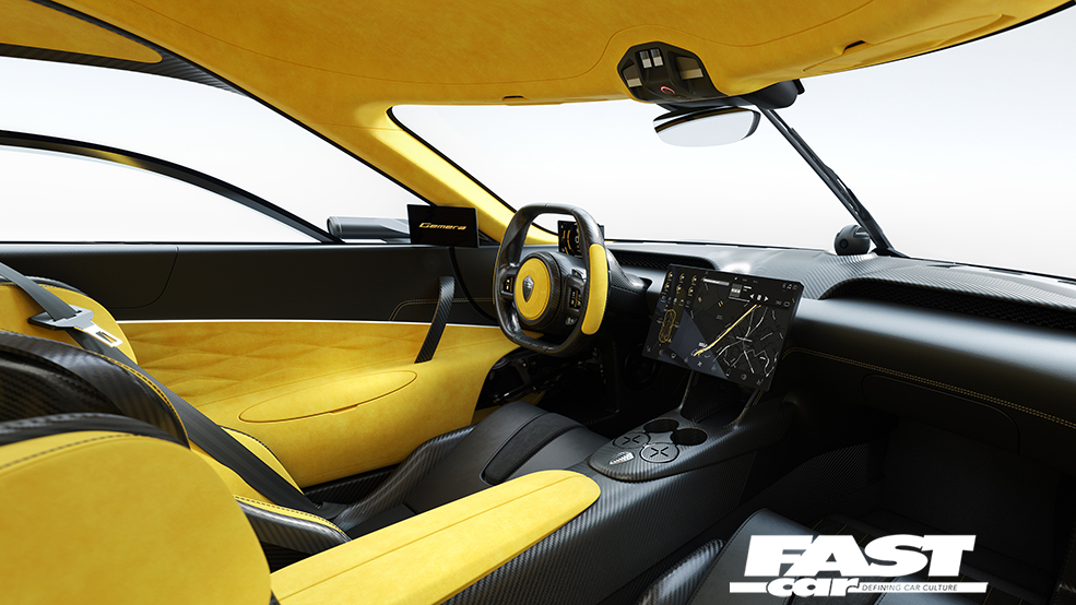Right, here comes the interesting part. Power comes from three electric motors, one on each rear wheel and one on the crankshaft. These alone will deliver 1100bhp, and you can drive it in electric only, but you can only cover 31 miles. Now the engine is a three-cylinder, 2.0-litre twin-turbo “Freevalve” internal combustion engine that drives the front wheels. It can be run on ethanol, or CO2-neutral methanol, which, according to Koenigsegg, is “at least as CO2-neutral as a pure electric car running on a ‘good’ electric source”. Oh, that engine alone produces a whopping 600bhp and 443lb ft of torque… The “Freevalve” bit of all that is an engine that ditches the cams to better control valve timing, efficiency and power.