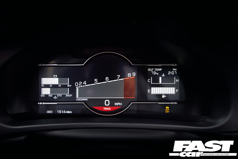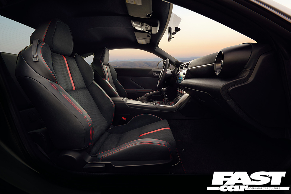 Inside, Subaru has spruced up the BRZ with an 8-inch infotainment touchscreen, utilising Subaru’s latest Starlink system, as well as a 7.9inch digital driver display which features a large rev counter in the middle, but changes when Track model is selected to display a graph-style counter instead.