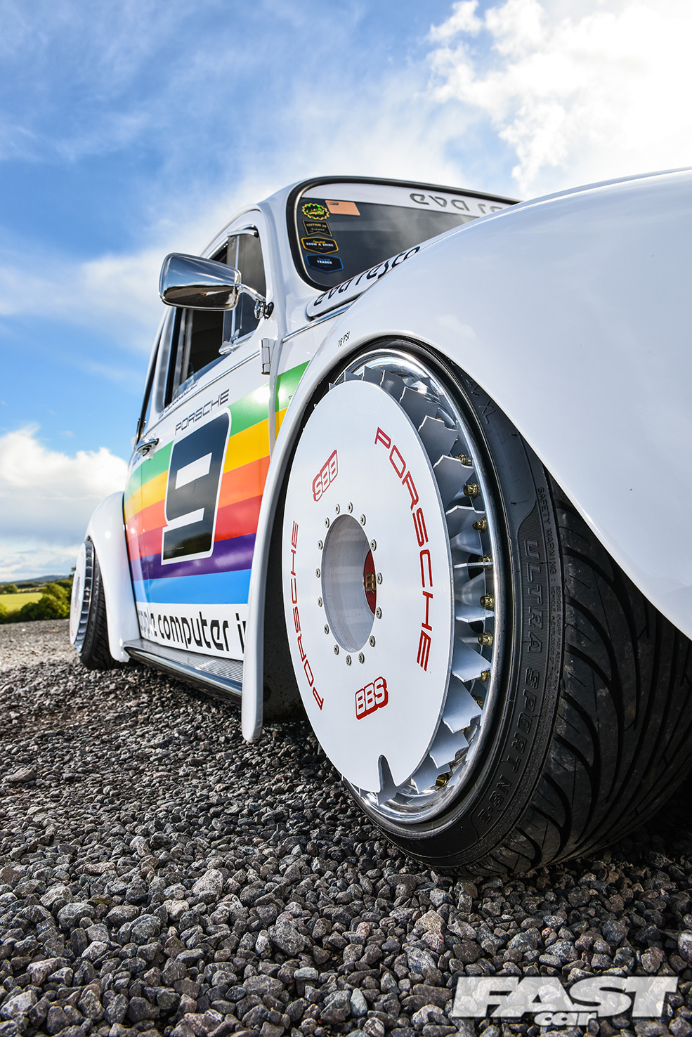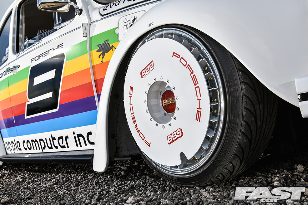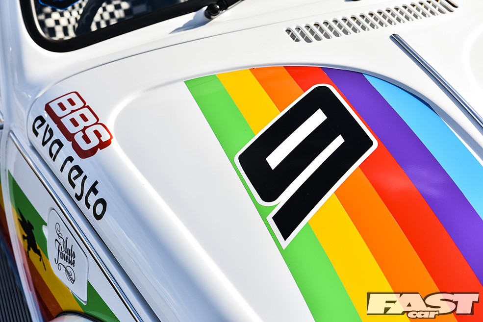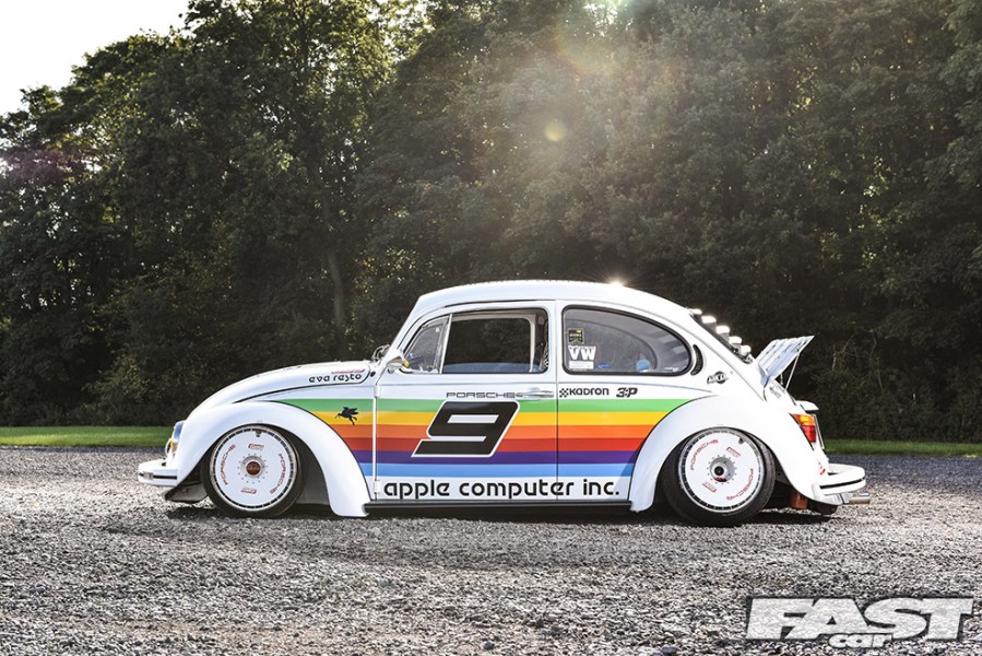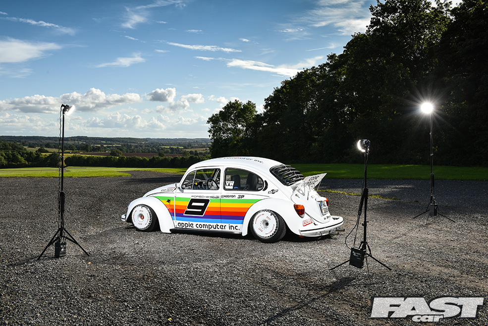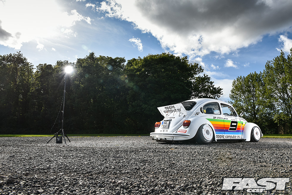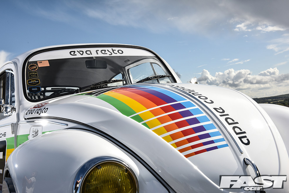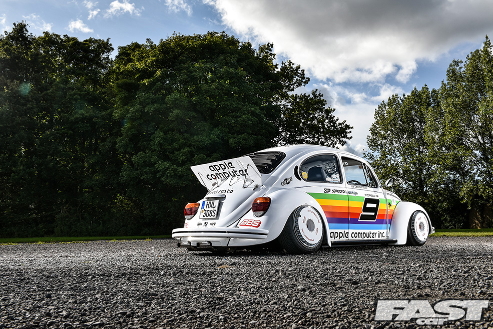 “I love Porsches and Beetles and have even owned a few 928s, but my budget can’t stretch to an air-cooled one,” muses Max. “I’ve always been a fan of the old 911 race cars though and had the idea of applying one of the more iconic liveries to the Beetle sometime after it’d been painted. I considered all manner of different colour schemes but settled on the Apple one as it’s so unique, it being the only race car Apple have sponsored to date.”