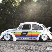 1978 VW Beetle (number 213 of the final 300 to come to the UK), Apple Livery inspired by the 1980 Porsche Kremer 935 Turbo ‘Apple Computer’ livery car, rear wing fabricated from ali with adjustable supports and quick release pins on the engine, full factory quality restoration, with detailed running gear and no stone chip or underseal used anywhere