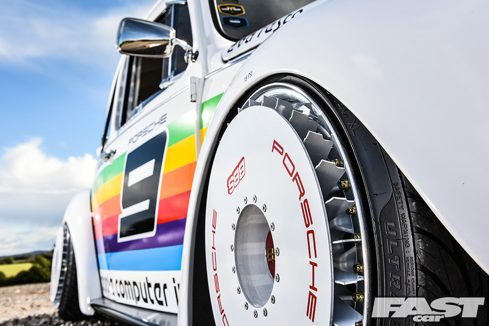 The resulting livery is hard to fault, and there’s no denying that it really, really suits the similarly styled Beetle, though it did force Max to up the ante styling wise if he was going to draw further parallels with the flame-spitting 935 ‘flachbau’ he was paying homage to. The most obvious examples of Max attempting to really highlight the relationship between his Beetle and the Porsche are the wheel covers which sit atop a set of stupidly rare Porsche fitment BBS RS wheels, another of the former’s signature components and additions which caused quite a stir when they were unveiled earlier this year.