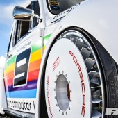 ‘Turbo fan’ wheel covers have come to be associated with some of motorsport’s most iconic machines, including the Group A Lancia Delta Integrales, Sierra Sapphire Cosworth rally cars, and most famously of all, the Porsche 935 K3s. Their turbine style helped to funnel cool air into the brakes, in turn helping to preserve ultimate stopping performance – of paramount importance when monstering La Sarthe. While it’s true that those on the front of Max’s car probably do have some kind of effect, the impact they can have on the drum-shod rear is negligible, but they stilll look cooler than a penguin scoffing a Mint Feast in a blizzard!