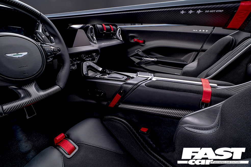 11. Born from an exciting new collaboration with Boeing and created by the brand’s bespoke customisation service ‘Q by Aston Martin’, the livery takes the legendary fighter jet for inspiration and is finished in Skyfall Silver, with contrasting satin black on the exhaust tips, vent grilles and vanes.