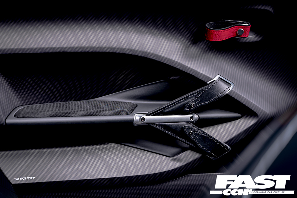 8. The interior uses a mix of traditional and modern materials. Structural satin carbon fibre, contrasts with traditional hand-crafted Saddle Leather, chrome, aluminium and even 3D printed rubber. Clever stuff eh?