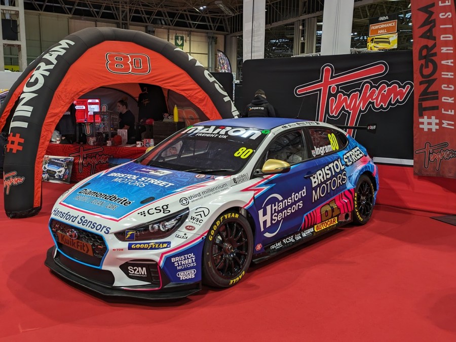 2022 BTCC champion Tom Ingram had his own merchandise stand at the show this year, with his Exceler8 Motorsport Hyundai i30 Fastback N taking center stage.