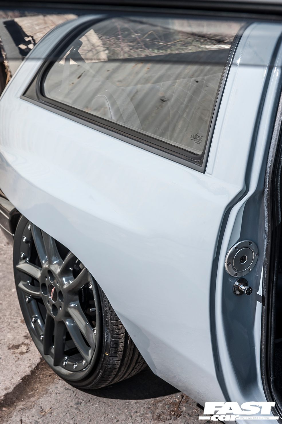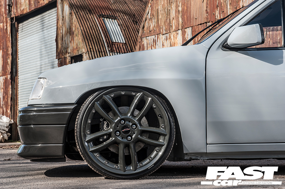 The genius of this Nova is that it appeals to two distinct generations of modifying enthusiasts at once. For the old guard who grew up around Novas, this car ticks a lot of classic boxes: it’s got a C20XE, which is what everyone wanted back then, as well as the period S.I.D. arch kit, Wilwood front brakes (still with the drums at the back, natch), smoothed tailgate and doors with poppers, Cool Louvres bonnet, the fuel filler relocated to the door shut, the Astra digi-dash, and the GSi interior with SR seats. All the desirable touchpoints that would have made a killer Nova for a Saturday night cruise. But this car works equally well for the fans of today’s cutting-edge scene trends: air-ride, über-cool grey paint, wrong-manufacturer wheels, smoothed and tucked engine bay, Singer-like interior – this is the Holy Grail, a Nova that everyone one likes. (And if you don’t… well, you’re wrong, sorry.)