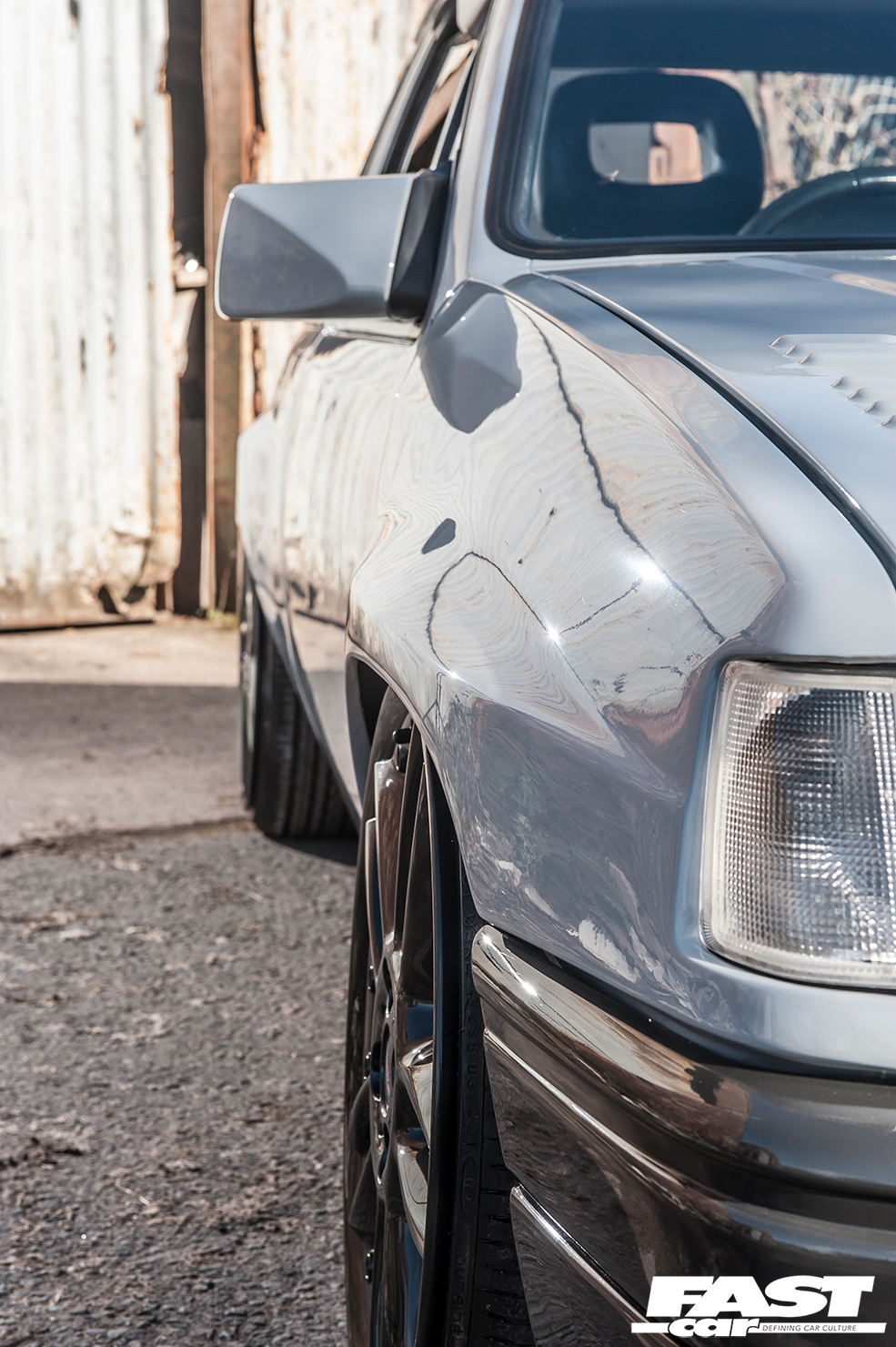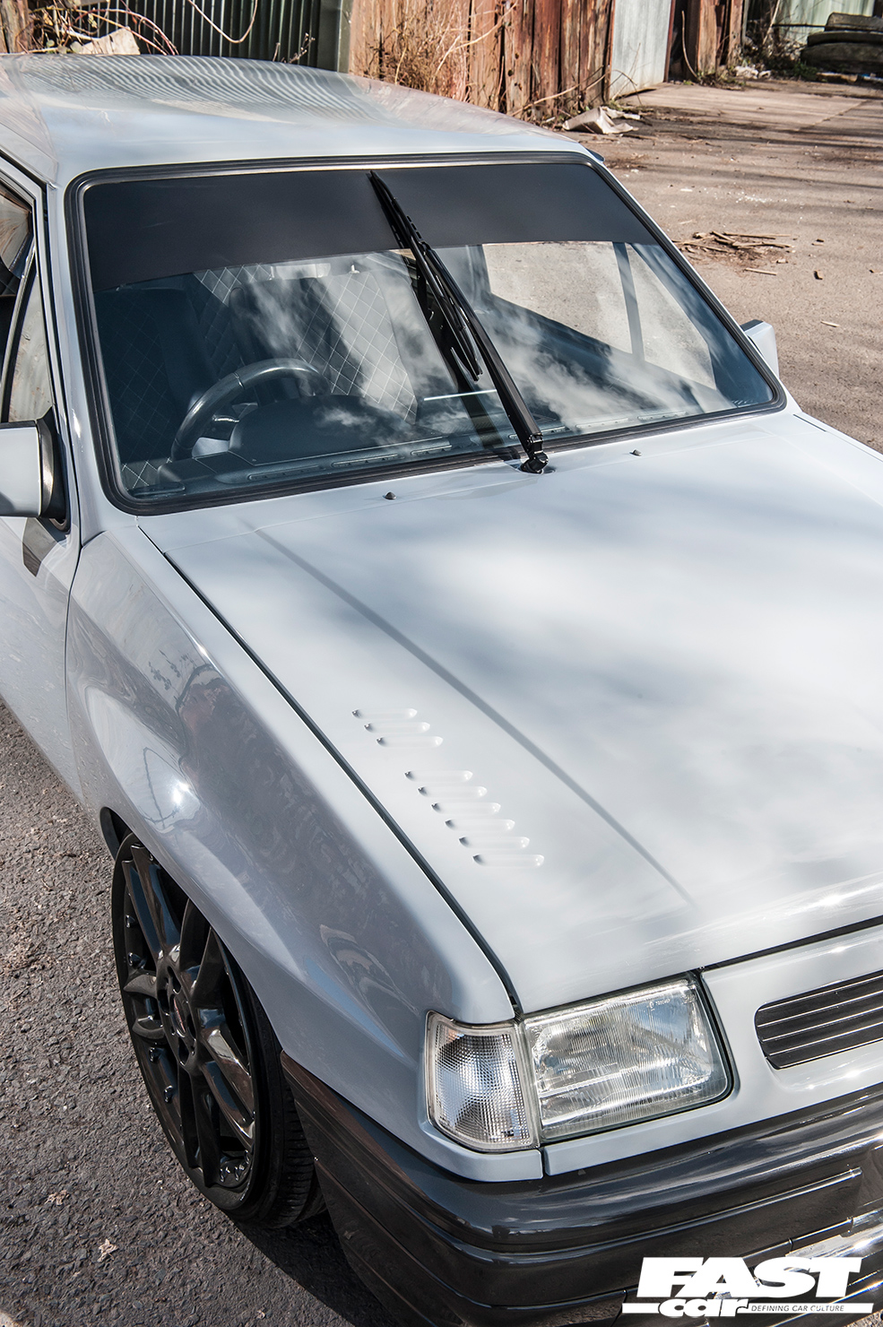“All my cars have been fairly heavily modified, but I found that in 2015 when I felt like the car was finally finished, I realised that I had followed the basic Vauxhall setup – Speedlines and coilovers with a fairly plain interior,” he ponders. “As I was getting married in May 2018, I decided in May 2017 to strip the car and start again with an engine conversion, and bring it up to date with a new scene look.” So that’s precisely what he did, and it explains a lot – this isn’t the work of some scenester who’s taken a retro icon and cynically coloured it with the modern brush of fashion-forward paint, air-ride, and big tucked rims on skinny tyres. No, this is the product of a lifelong enthusiasm that’s simply going with the flow as the years pass by.
