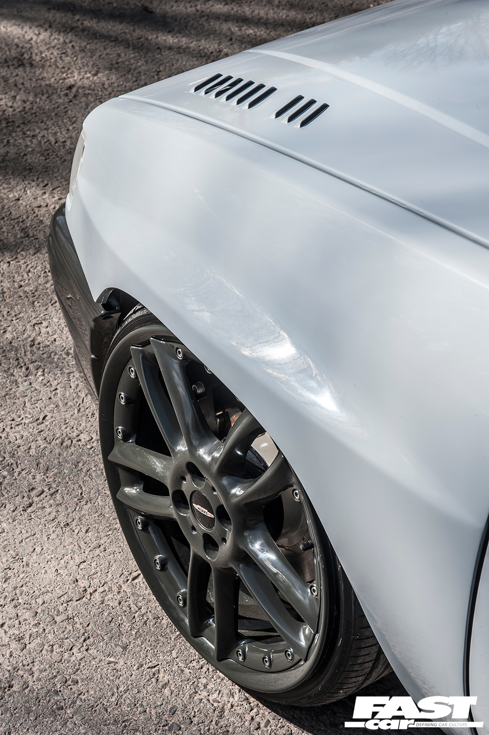 “Every single part has been repainted, upgraded and updated from the last version,” he assures us. “I was bored of the white and wanted a new look, so this Storm Grey was my favourite after seeing a friend’s Fiesta ST200. I then wanted to go with large wheels, and found that the MINI wheels were the perfect fit for PCD and bore size. I kept with the GSI bumpers, but gave them a refresh, and with the engine I wanted more power but something not complicated or untidy, so I went with the C20XE setup and rebuilt it myself. Altogether I’ve taken inspiration and ideas from other people’s Novas at shows over the years and added my own touch onto how I wanted it to look.”