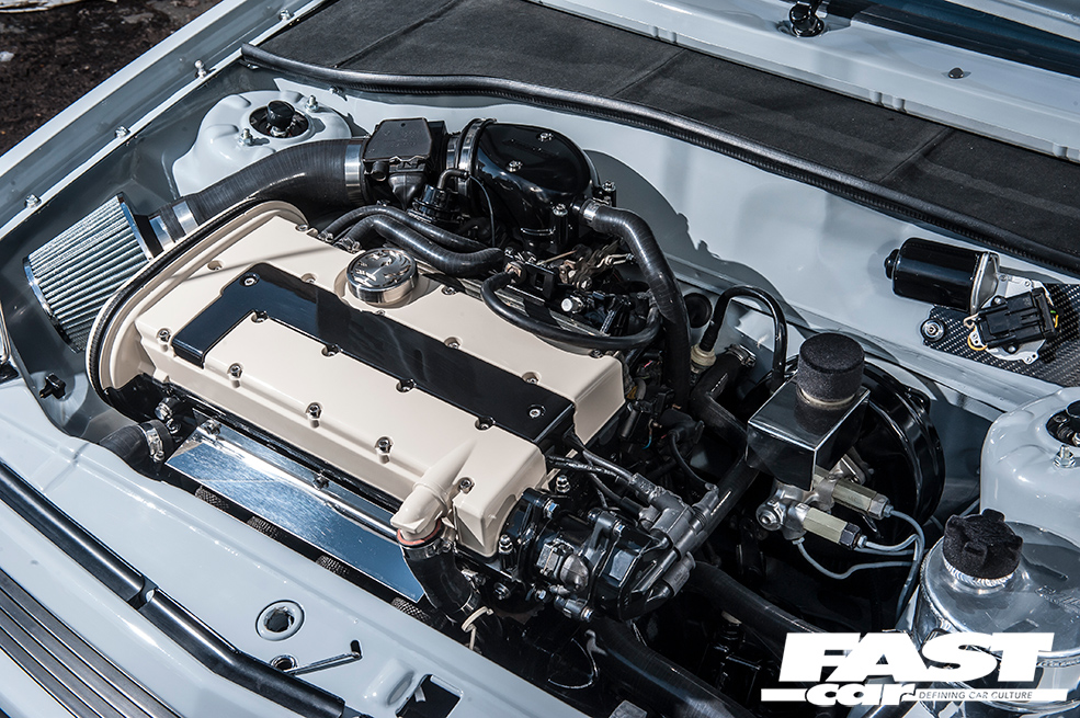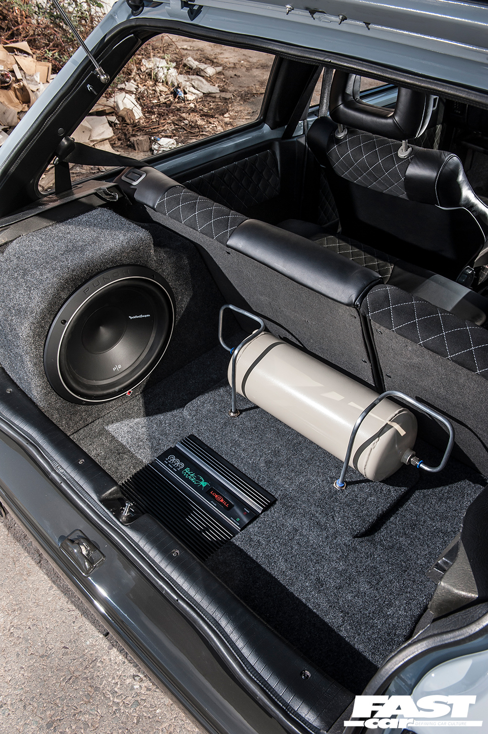 Perhaps the most significant element of this quest for uniqueness is the air-ride. This isn’t the first time we’ve seen 18” wheels tucked inside Nova arches – and the combination of skinny 165-section tyres and those 30mm-wider arches certainly helps – but the manner in which these weirdly unexpected MINI rims park themselves up there with that immediately recognisable psssh-psssh sound is enough to get every old-school modder running over to see what’s going on. Nathan’s used TA Technix hardware to get the aired-out Nova sitting pretty, and it’s really given the retro hatchback a 21st-century twist.