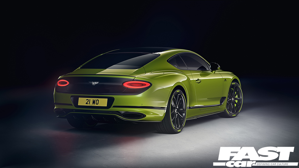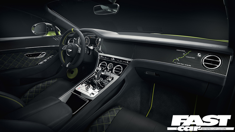 Obviously the imaginatively-named Continental GT Limited Edition is about more than just painting a number on the front – the Pike’s Peak graphics pay tribute to the record set in 2019 by Rhys Millen in a Conti GT, and it’s got a sweet carbon fibre bodykit and eye-searing Radium by Mulliner paintwork. All the chrome’s been refinished in gloss black, and it has painted calipers and Colour Edition Pirellis to match the mad paint. The 22-inch wheels are gloss black to tie in with all the interior and exterior trim, and there’s Radium stitching everywhere inside.