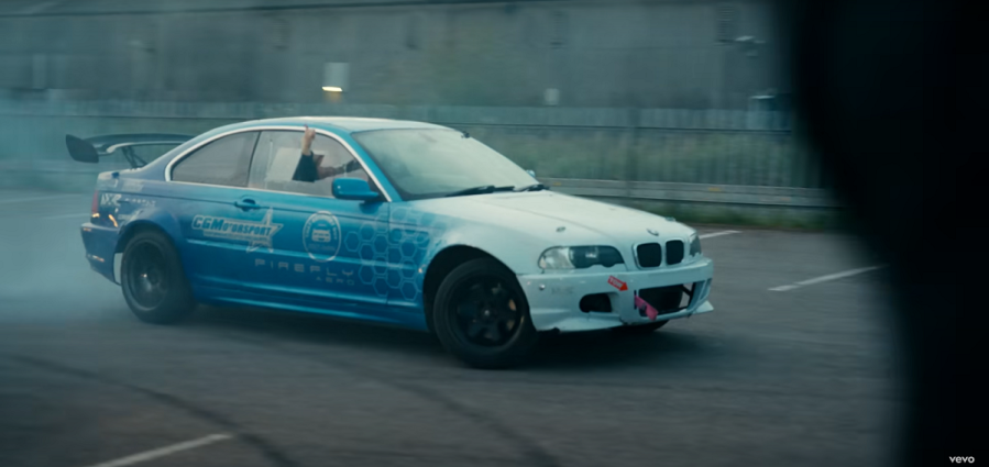 Sticking with the BMW theme, this E46 coupe is another key stunt car used in the music video’s drifting shots. In particular, it joins the aforementioned black S14 Silvia in a tandem run, during which the pair circle around a central group of cars at the impromptu group meet.