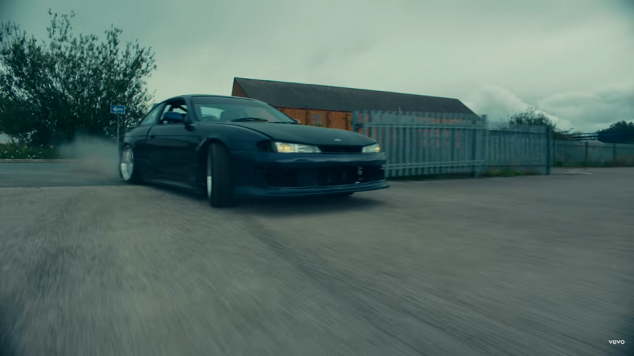 Next up, something a little more relevant to today’s modified car culture. This comparatively sensible S14 Silvia is one of the key stunt cars used in the music video. First, it can be seen hooning around an industrial car park by itself, but later in the video it becomes part of a tandem drift demonstration. If you watch with an eagle eye, you’ll notice that by the latter stages it’s running stock wheels on the rear as opposed to the aftermarket rims it starts out on. Evidently, they burnt through the fist set of tires pretty quickly on this shoot!