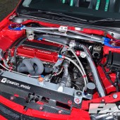 Is there a more popular car for performance tuning than the Mitsubishi Lancer Evolution? It seems every show is packed with ’em, and every one is making a billion horsepower. Because of this it’s easy to become a bit jaded by them. They’re everywhere and most of them are track cars, or are in the process of being turned into one. That’s why 25 year-old, race mechanic Aaron Palmer’s immaculate Palma Red Evo IX MR stopped us in our tracks.