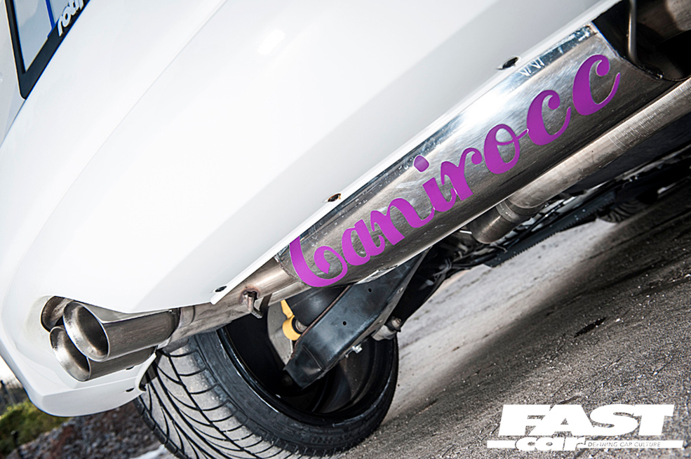 Custom cat-back exhaust system; Revo air feed intake.