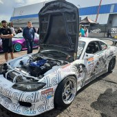 Joining the regular crew were a few famous faces. Luke Woodham stood out amongst the drift builds in his Baja-style trophy truck, while Becky Evans was also in action in her newly-restyled Peaches S15. Excuse the slightly dodgy long-range zoom shot above, we thought it was too cool not to use…