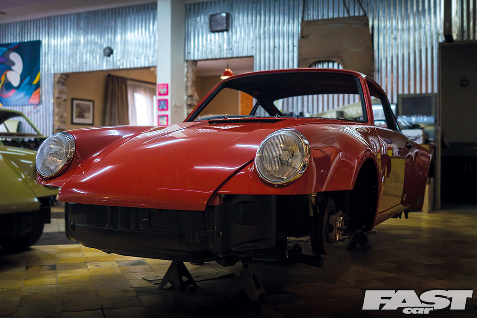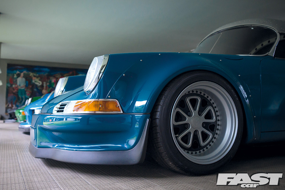 Custom matt silver; RWB fender fl ares; RWB bumpers; custom ‘Zweite Entwicklun’ brake lights; custom race fuel tank.