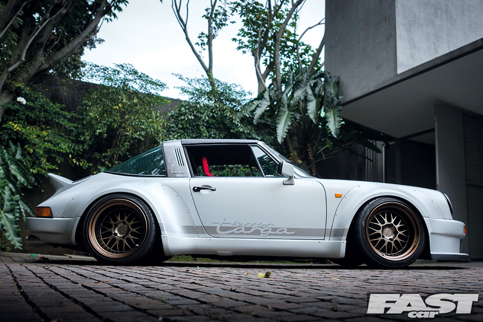 The transformation of the G Model 911 started back in the summer of 2014 and, similar to the Speedster, was a collaboration between RWB and Terror Garage. Ironically, the idea was spurred on by what the new name of the car would be – the Terror Targa (TT which also means Targa Top). Nakai-San flew down to Indonesia to put his magic on the bolt on over fenders and fabricated a custom exhaust system. Beautiful 18-inch Work Lanec LM1 wheels wrapped in Advan Neova tyres match perfectly with the styling lines of the 911 and custom matt silver paint.