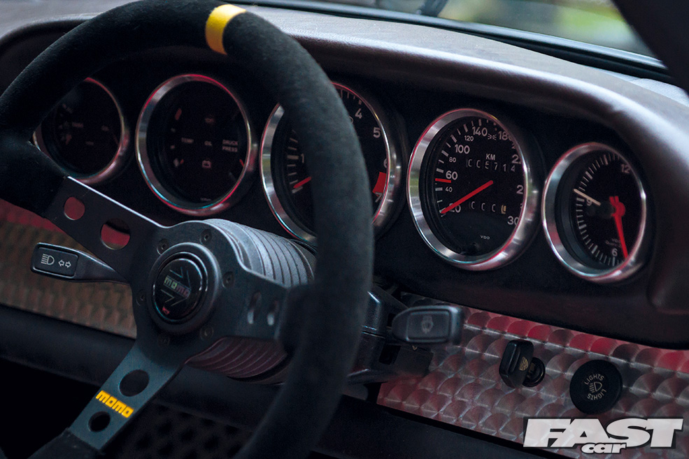 Custom aluminium dashboard; custom Red Bride racing seats; MOD.07 MOMO steering wheel; Terror Garage aluminium pedals.
