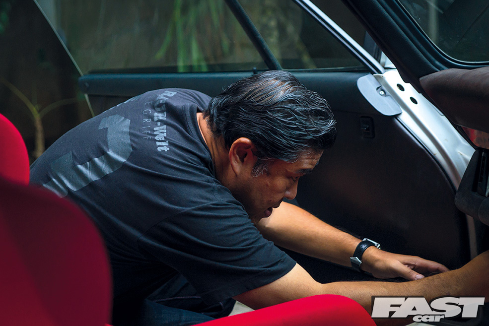The interior has also received the Terror Garage treatment. The main goal here was to have a factory feel, with a touch of modernisation. Beautiful custom red Bride Racing seats, MOD. 07 leather MOMO steering wheel, and that gorgeous custom aluminium dashboard help achieve the interior vision Yanto and Michael had in mind.