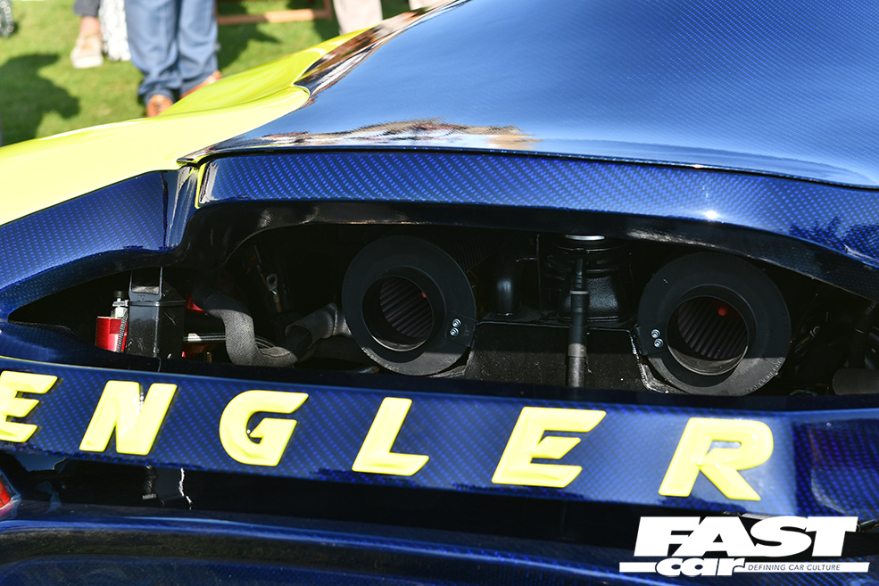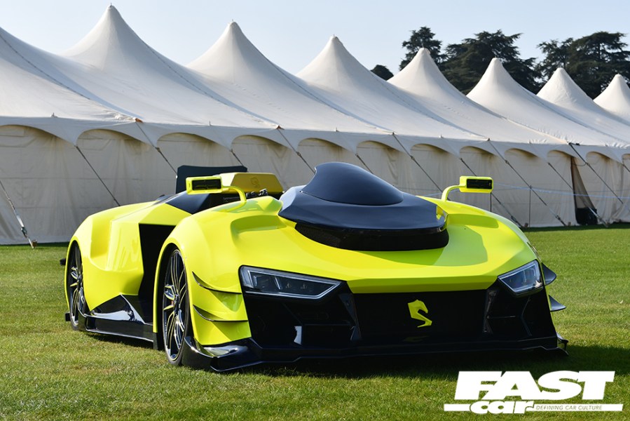 We spotted this lunatic creation at Salon Privé, and it immediately stood out among the fancy Ferraris and Lamborghinis because, well… just look at it. It looks like something that would have been built by Rinspeed in the late-nineties cruising era.