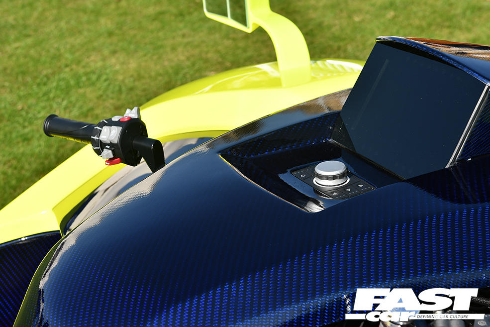 It’s got carbon-ceramic brakes, solid gold badges on the wheel centres, and custom suspension that tilts extravagantly through corners and squats down when you park it. Frankly, it looks like an extremely entertaining way to really hurt yourself. We kinda want one.