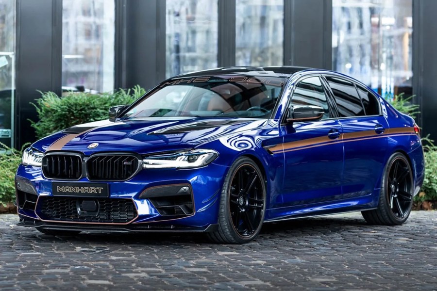 Even without modifications, the G30-generation BMW M5 Competition is certainly one of the beefiest sedans you can buy today. From the factory, its 4.4-liter twin-turbo V8 churns out 625hp, which – thanks to xDrive AWD – is enough to propel the car to 62mph in just 3.3 seconds. Electronic restrictors limit it to a top speed of 155mph, but if you’re feeling daring and have a clear stretch of Autobahn to hand, there’s no reason why a de-restricted M5 Comp couldn’t crack supercar territory. Truth be told, the G30 M5 is quicker and faster than any sedan would ever rightfully need to be on public roads, but that hasn’t stopped Manhart from extracting much, much, more potential from it.