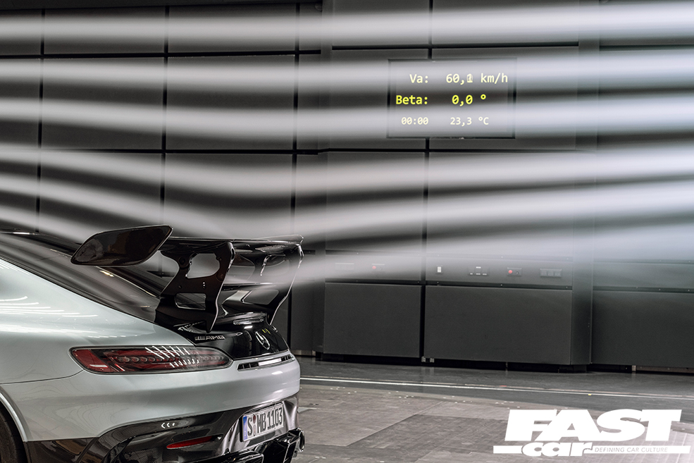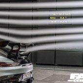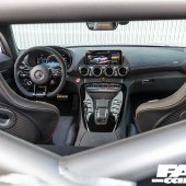 Suspension wise it gets competition-spec coilovers but with AMG’s ride control, which is electronically controlled via some dials in the cabin. The GT R Pro does away with this and you have to manually adjust the coilovers. If you do want to get hands on in the pit garage you can adjust front wheel camber and front and rear anti-roll bars.