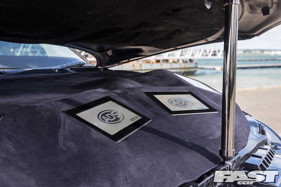 Surely there wasn’t room for any more?! “I got invited to a show in Italy but wasn’t happy with the state of things under the bonnet. I didn’t have money for an engine swap or bay tuck, you see,” Josh understandably states. “So I took matters into my own hands, creating a removable fibreglass/faux Alcantara engine cover, which now has another four tablets in.” Of course it does! That brings the total up to 12 and ensures that anyone admiring Josh’s stunning Pearl Grey motor can now watch a spot of cricket, check their emails, or even take a selfie!