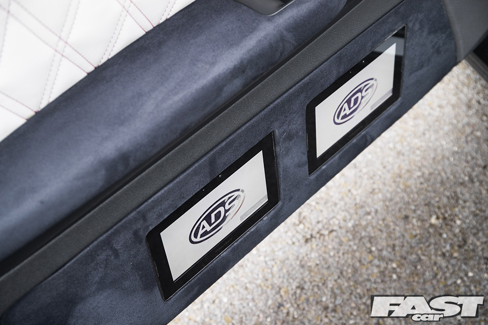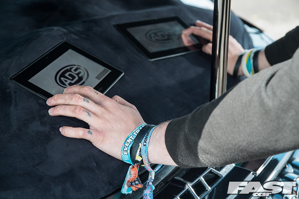This is where the really memorable part of Josh’s car begins to come together, all starting with his open-mindedness not to religiously follow the crowds. “I’d bought four tablets over the winter I was going to use at home with the little one,” he remembers. “Until I decided to put some in the car.” An ingenious idea, and with the backing of KC Customs, Josh began cementing plans to mount one of his handheld multimedia devices on each of the car’s door cards.