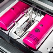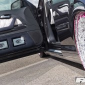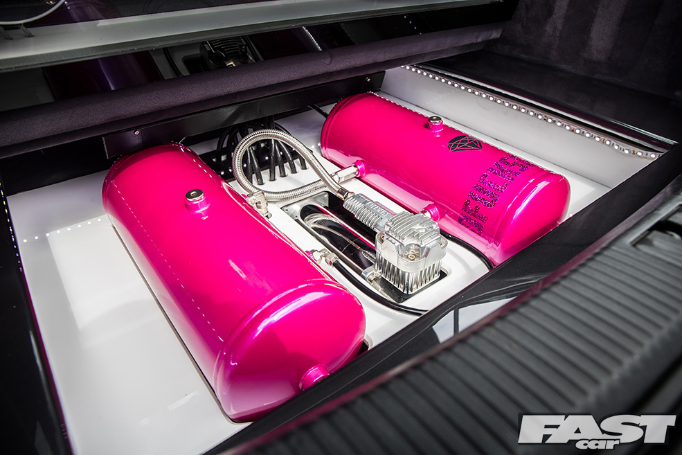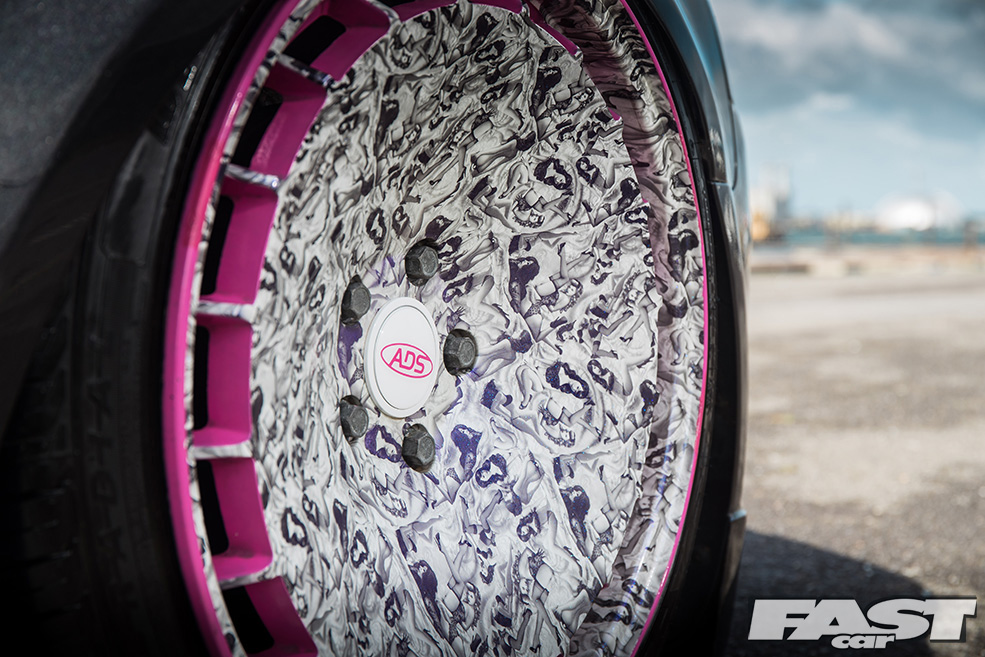 “Stefan from the firm sent over some designs that I agreed to, and my goodness did he do a good job!” Josh grins, proudly showcasing a set of rims we guarantee you won’t forget in a hurry: with the unique pin-up girl montage print topped off with a metal flake, pearl polish finish that looks incredible from every angle.