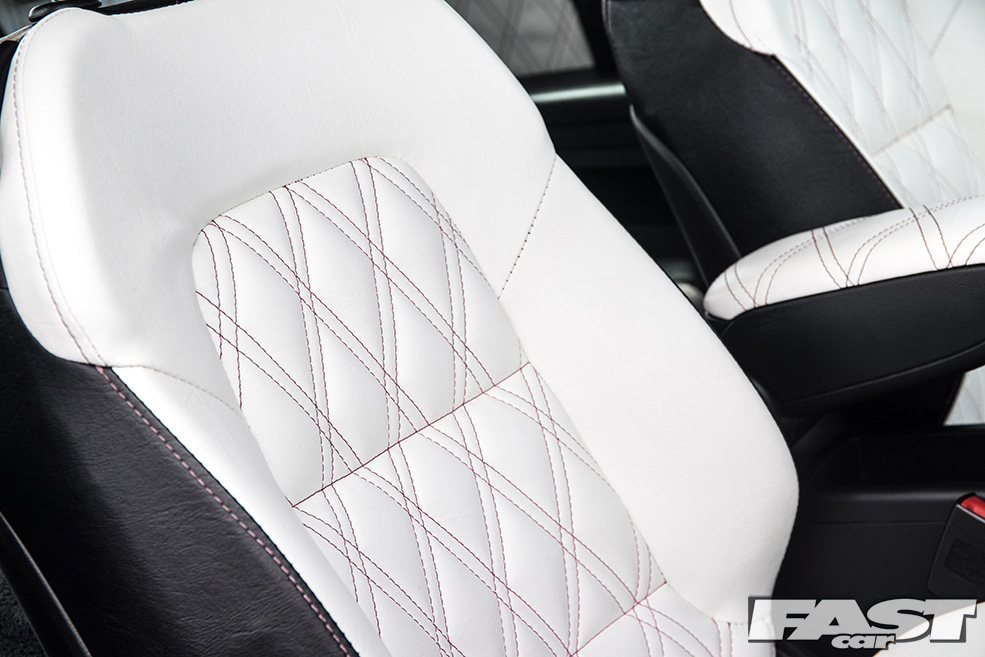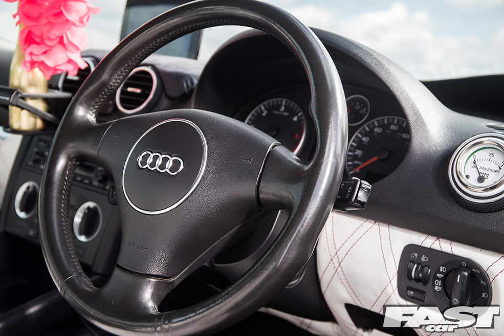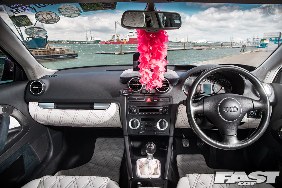After a chance encounter with upholsterer Emma Pink from Pink Upholstery, Josh snapped up this opportunity to get his car’s furniture freshened up in the form of a full black-and-white re-trim, along with entrusting his wheels to the guys at Bristol-based Tiki Customs for something a little unusual.