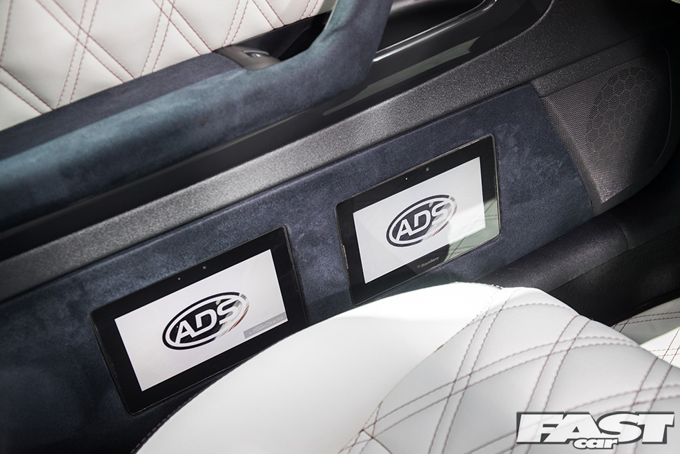 “Then we agreed that two tablets per doorcard would look much better, and things kind of spiralled from there!” Josh grins. Of course, once this quartet was installed, the centre console looked a little bare, meaning another custom housing was required to drop in another tablet up front. But he wasn’t stopping there. “I wasn’t happy. I needed more! So I ordered another three tablets which we set to work installing inside the boot lid.”