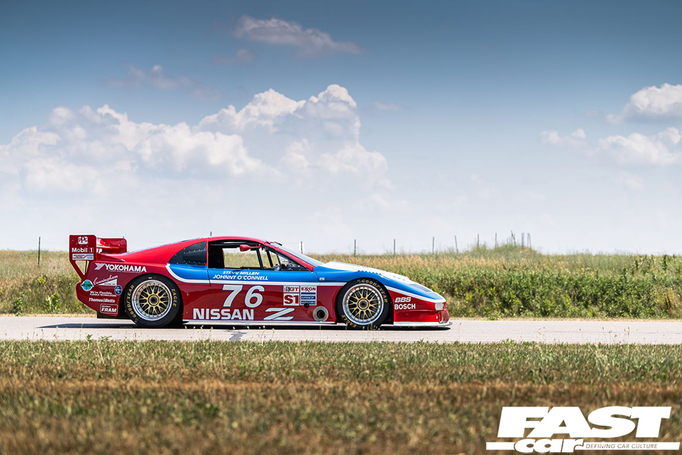 Built in 1989 as one of seven factory-supported 300ZX racers for the Clayton Cunningham Racing team, it features all sorts of unique motorsport upgrades: a wider track and longer wheelbase, aggressive body aero, unique water-cooled brakes.