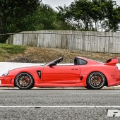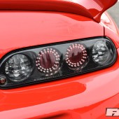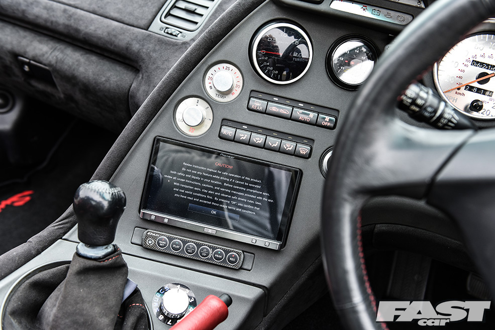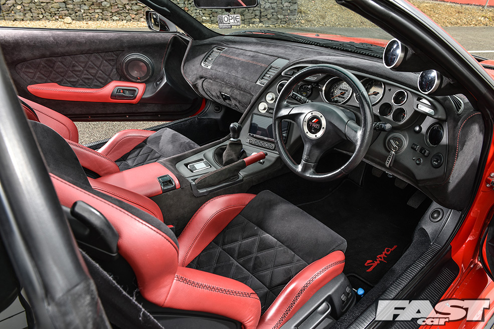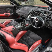 By this stage, Ibrar was fairly certain he had something pretty special on his hands, so when it came to tackling the interior, he was only going to settle for the very best. 90s Japanese cars have often been criticised for being full of cheap black plastic inside, so his first job was to re-trim the entire innards in a custom red leather and black Alcantara theme, instantly bringing the cockpit bang up-to-date, before some wing-backed Recaro buckets from an Audi RS4 were bolted in (once they’d been retrimmed to match, of course). Now classy enough to match any Italian supercar, the inside of this car looks like THE place to be whether the roof happens to be open or closed at the time.