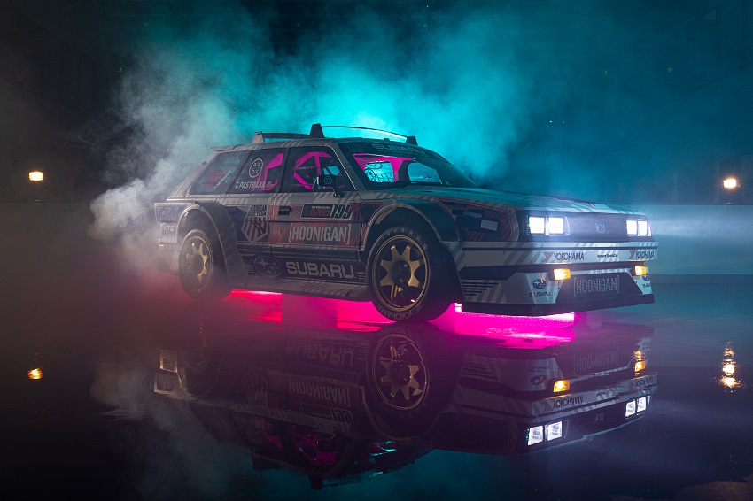 After the opening montage, we meet Pastrana’s companion for this wild ride – a purpose-built vehicle based (very loosely) on an ’80s Subaru GL Wagon. It doesn’t take long to realise, however, that this ‘Family Huckster’ shares very little in common with the humble car it resembles. One of its defining traits, for instance, is a borderline-excessive active aero package. Meanwhile, under the bonnet, you’ll find an 862hp EJ boxer engine, based on the ones used in Subaru’s rallycross cars. There are several characterful little flourishes too: carbon fibre roof racks and a period-correct cassette player add more of the Hoonigan charm that we’ve come to know and love.