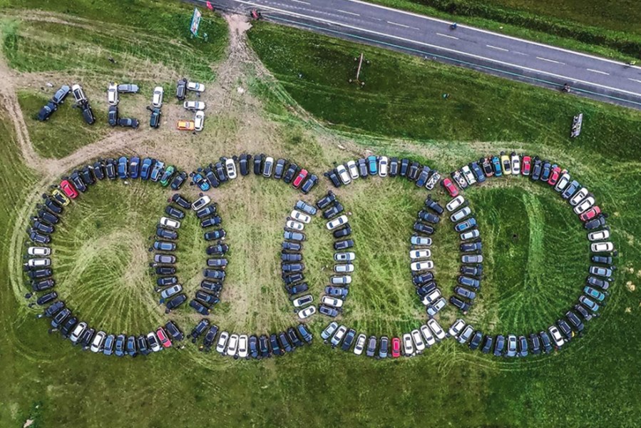 What needs 400 plus people, 193 Audis, involves going around in circles and takes four hours to complete? The world’s largest ever four-ring Audi display, that’s what!