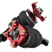 The front kit features progressive-rate, double-bellow air springs, paired with threaded-body monotube struts. With 30-levels of damping adjustability, the system is able to be customised to each car builder’s unique performance needs. Topped off with adjustable camber plates, the kit provides precise steering feel, comfortable ride, and superior body support. All elements combined, the front kit drops the vehicle down 105mm (4.1”) from stock height.