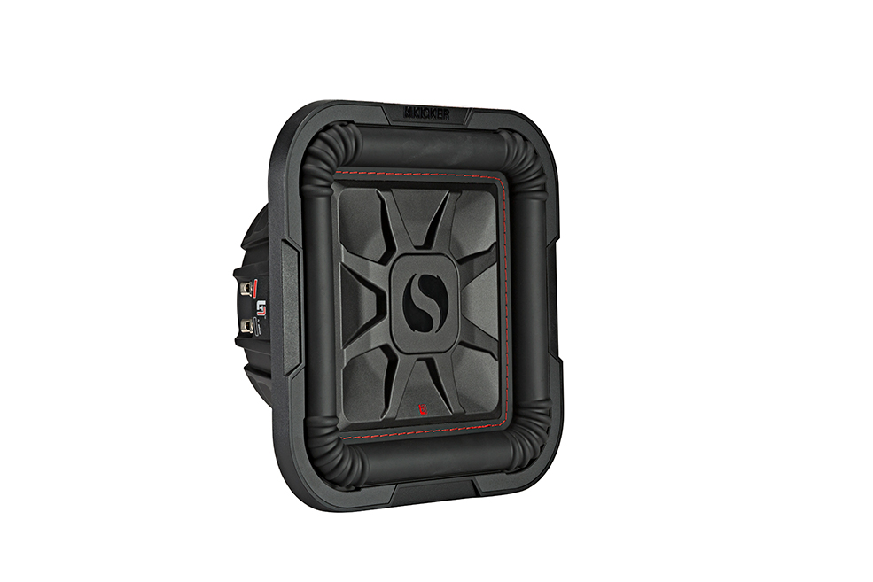 We all know that the advantage of thin subs is that they can be mounted in the places that other woofers cannot reach, like behind or under seats, and these are certainly engineered to be useful for that. The 8-inch version will work in a sealed enclosure as small as 5.7-litres for starters. Where slim subs normally fall down though, is on sheer musical punch, but that’s not the case here, these L7Ts prove that you can get big bass from a shallow mount. Kicker Square subs have always been famous for being square, but they also can shift 20-percent more air than any comparable round woofer.