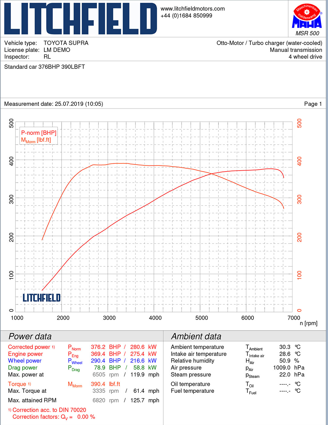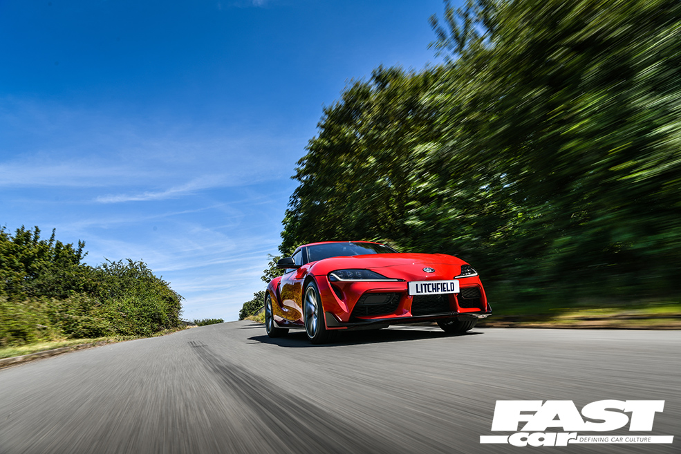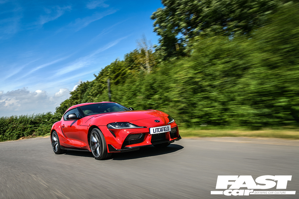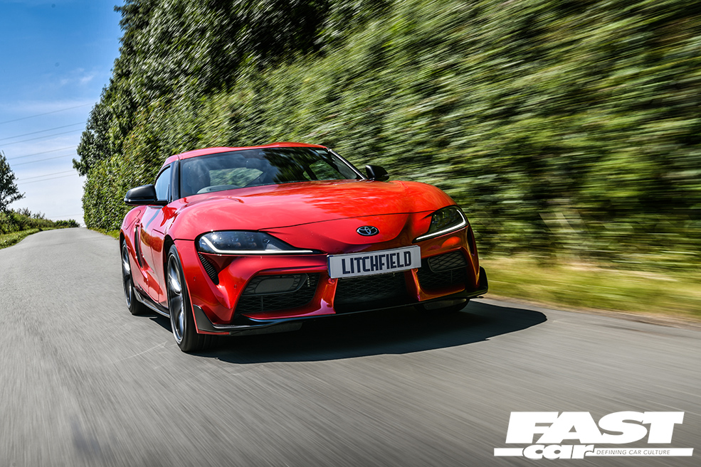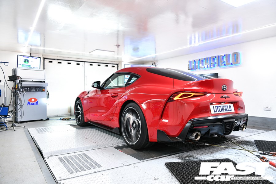 Having had considerable experience with the Supra’s six-pot motor already in its Bavarian stable mate, Litchfield’s initial remap will raise the performance from its stock 335 horses and 365lbft, to well over 420bhp and 440lbft. Considerable gains even when a standard Supra is producing numbers closer to 370bhp and 390lbft on Litchfield’s German Maha dyno when running on full-fat UK Vpower.