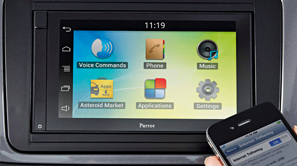 This is where this particular marvel comes into its own. Being from Parrot you’d expect some pretty special Bluetooth functions like wireless music streaming, crystal-clear hands-free calling and multi-phone connectivity and you’d be right – that’s exactly what you get. What we don’t normally expect though is WiFi connectivity, but the ASTEROID has that too. In fact, it can latch on to a wireless hotspot up to 100-meters away, use a 3G/4G USB dongle, or tether to your smartphone for sweet, fast, in-car Internet access. It automatically connects too, so within seconds, you’re online – all from the comfort of the driver’s seat.