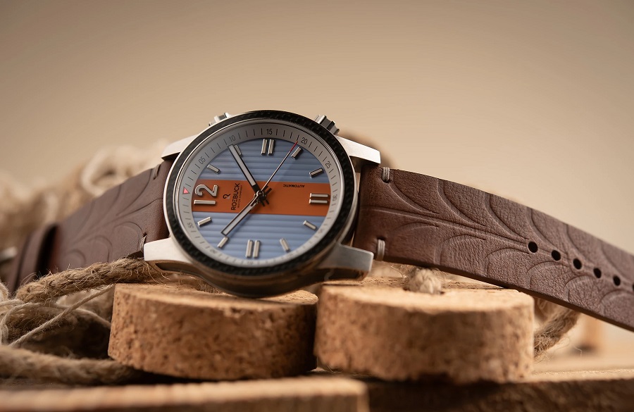 Like its creator, Guy Roebuck, the Diviso is well-travelled and carries influences from all over the world. The variant shown above clearly references the iconic Gulf Racing colors, while the textured two tone dial took inspiration from the metal corrugated roofs found in Texas. This is a nice little nod to the company’s roots, being located in the Texan town of Round Rock (as you’ll find a tribute to on the case back). However, if that’s not to your taste, the Roebuck Diviso also comes in British Racing Green, or classic black & white, with several strap options.