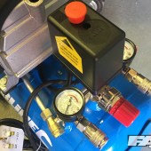 Topping up that tank is a reliable 2 horsepower motor, which (having a little more power than our Jules’ new Beemer) fills the tank to 116psi in no time at all. It then cuts out ready to re-start when it needs a top up. Crucially a safety pressure valve and thermal cut-out are included in the compact design to ensure nothing can go wrong. It may sound like a small point, but not having these is the reason some unbranded items can become little more than a ticking time bomb.