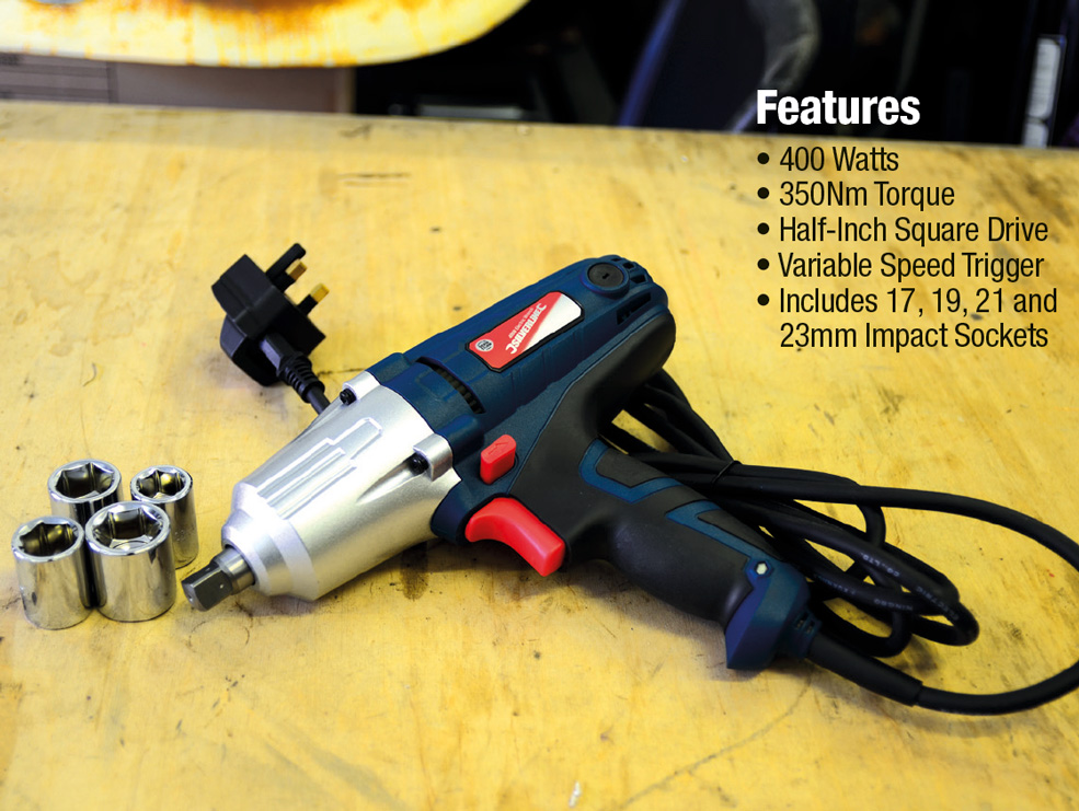 I guess surprising is the word of the day here. I mean, it’s not as if you expect a massive amount on the power tool front for this sort of money, is it? What you’re getting here though is a full-on 400 watt, corded power wrench that’s somewhere in the middle of a pro-style air impact wrench and an expensive (for a similar spec) cordless item.