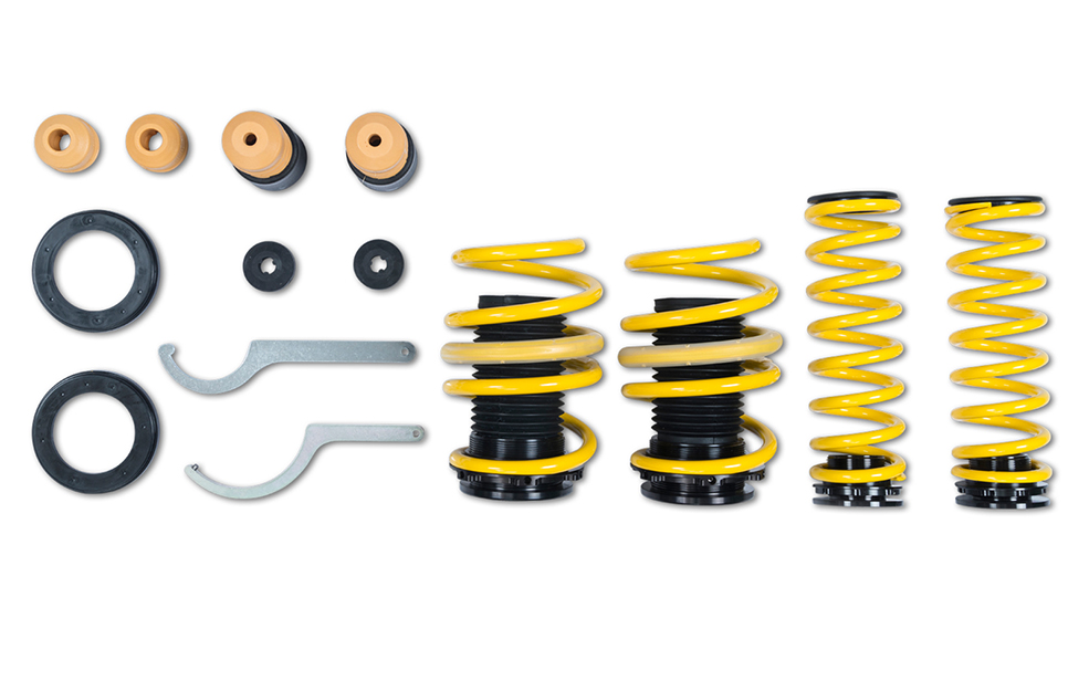 Basically, these are a kind of coilover conversion, but what’s even more important is that they’re bringing cost-effective height tweakability to a whole new range of cars. Most commonly the models that already have performance-tuned dampers from the factory, along with modern motors where the OEM shocks are still in great nick. And even the most up-to-date stuff where retaining the electronically-adjustable dampers is a key priority.