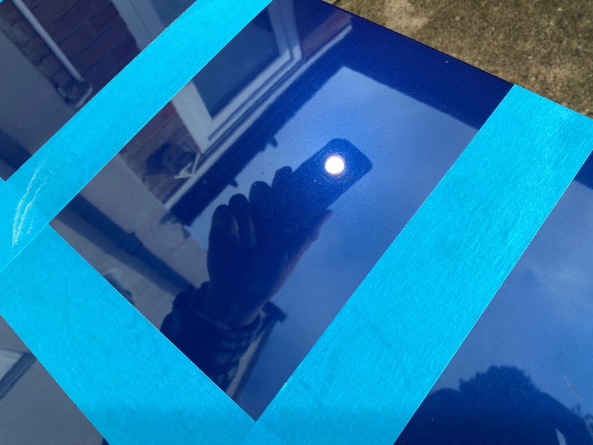 I used a test panel that had been prepared beforehand to ensure that there was no wax residue left. Next, I used a gloss meter to take a gloss reading before I did any polishing. Then I applied Autoglym Super Resin Polish to a polishing pad and did four sets of four passes in alternating directions. Any product residue was wiped off, and then the gloss was measured again. Finally, I used a Meguiar’s MT103 Sunlight 3+ Detailer Inspection Light to check for surface clarity and remaining imperfections.