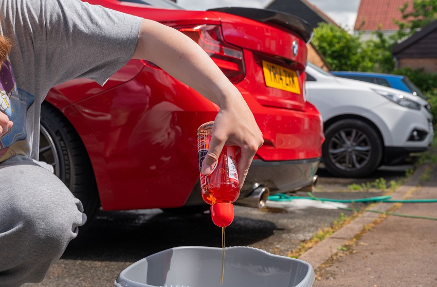 To test Griot’s car wash shampoo as accurately as possible, I made sure to adhere to all of the manufacturer’s instructions. This meant diluting 1fl. oz of Griot’s Car Wash for every two gallons of water. After applying the product to the car, I then observed the amount of foam it produced and assessed how slick it felt on the panel. Next, I carried out a visual and physical inspection to see how much dirt, if any, was left after washing.